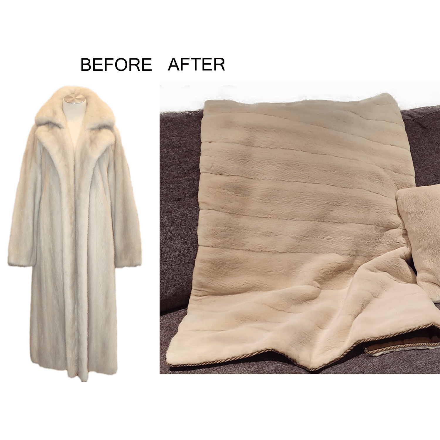 Lunaraine Mink Fur Throw Blanket Before and After