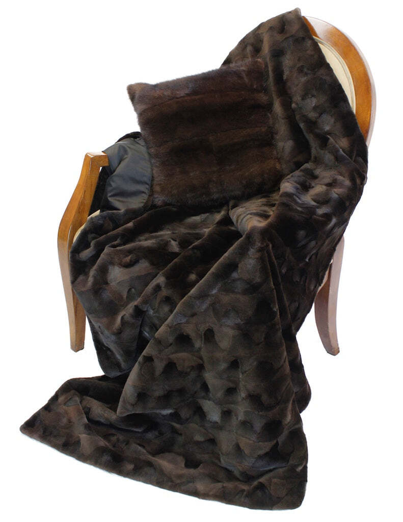 Brown Sheared Oval Mink Fur Throw Blanket