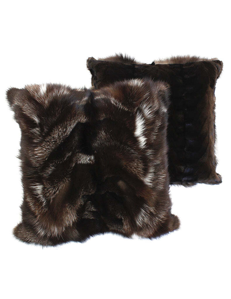 Brown Silver Fox Fur Pillow Reversible to Dark Sheared Mink