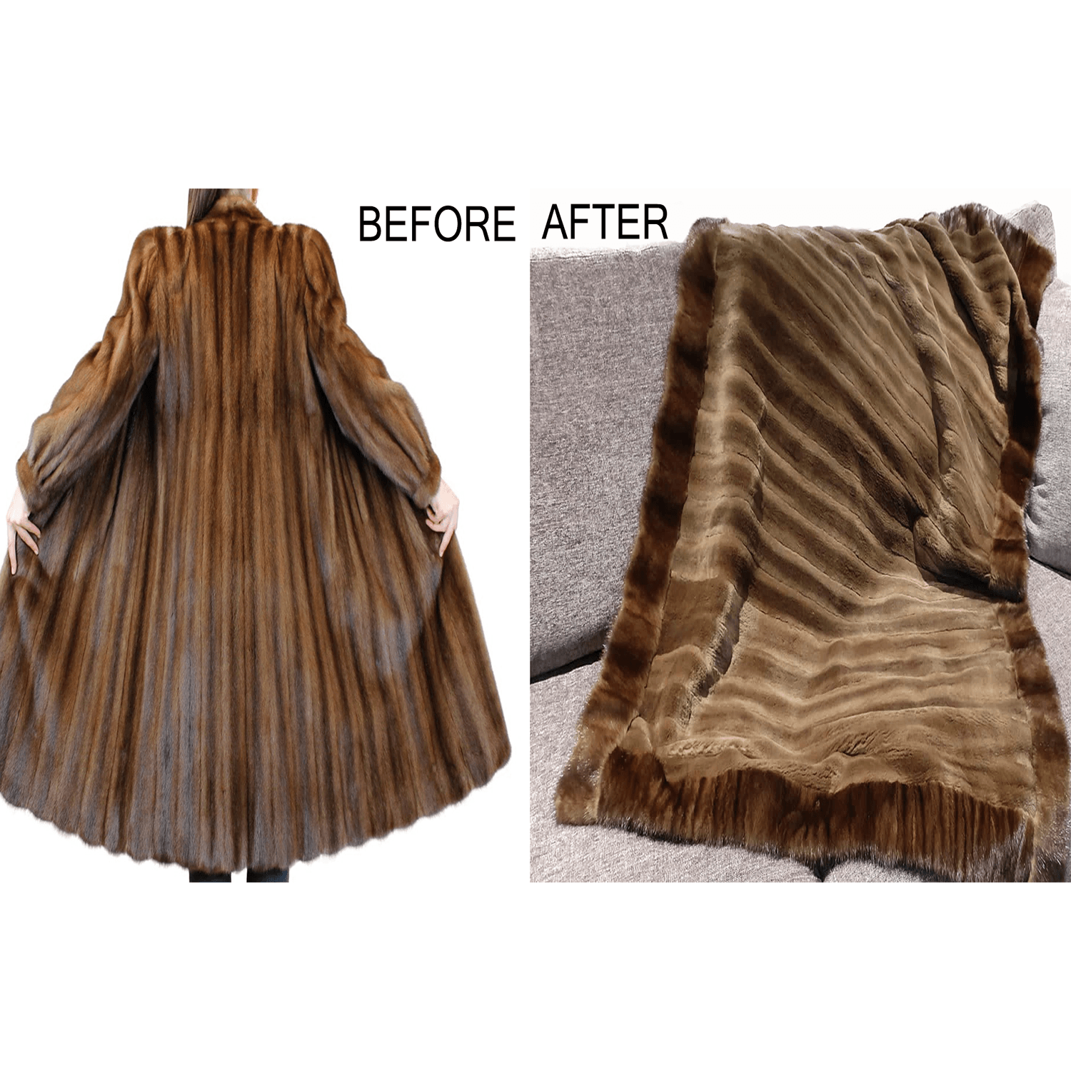 Azurine Mink Fur Throw Blanket Before and After
