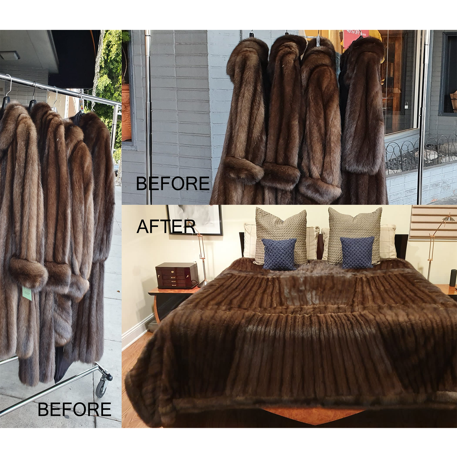 King Sized Sable Fur Bed Spread Before and After