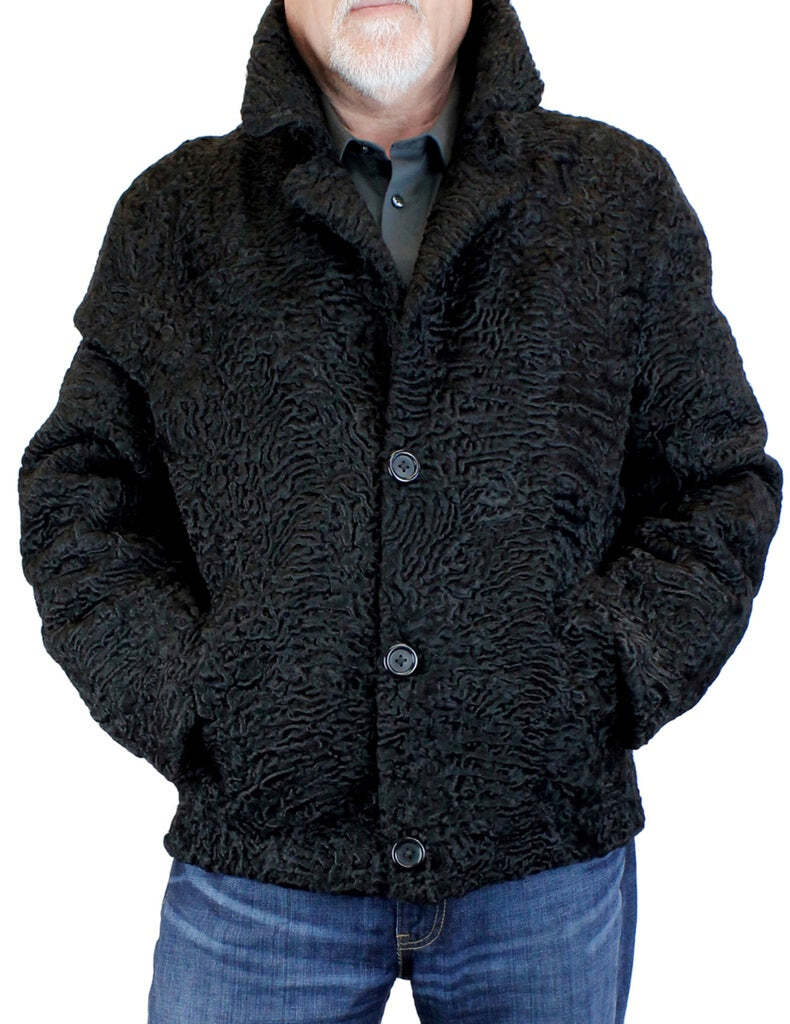 Men’s Black Persian Lamb Fur Bomber Jacket