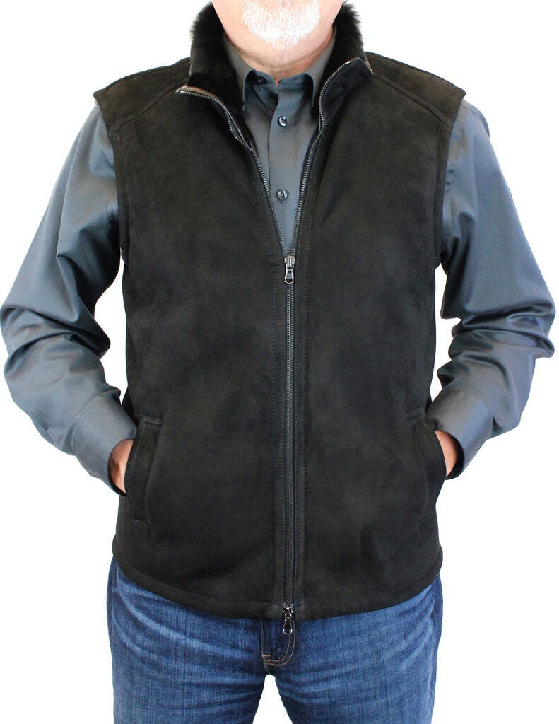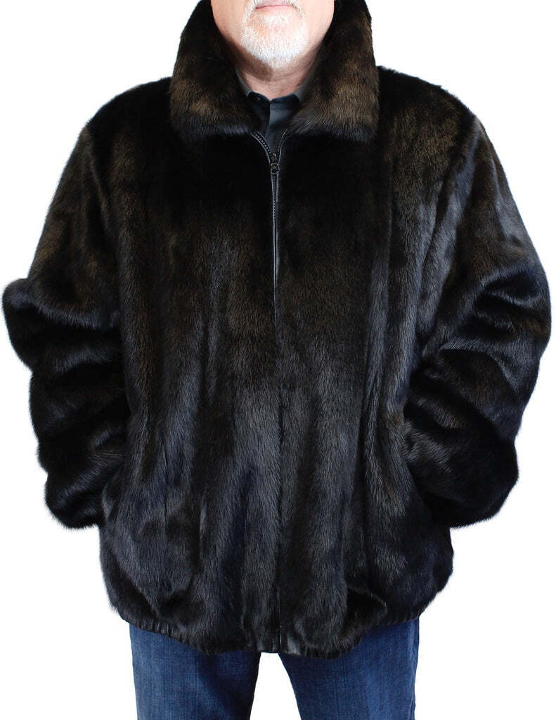 Men’s Reversible Dark Ranch Mink Fur and Leather Bomber Jacket