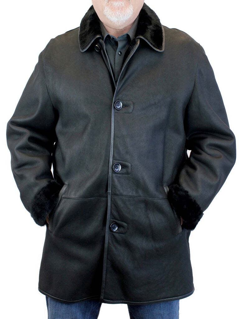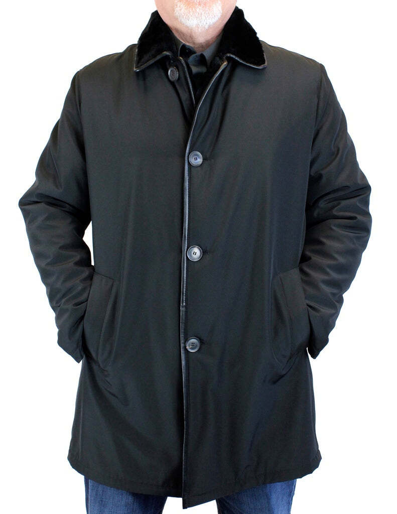 DI BELLO - Men’s Black Merino Shearling-Lined Raincoat