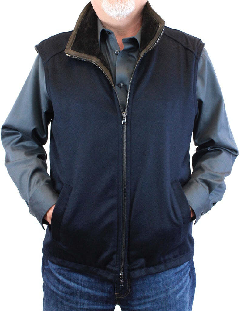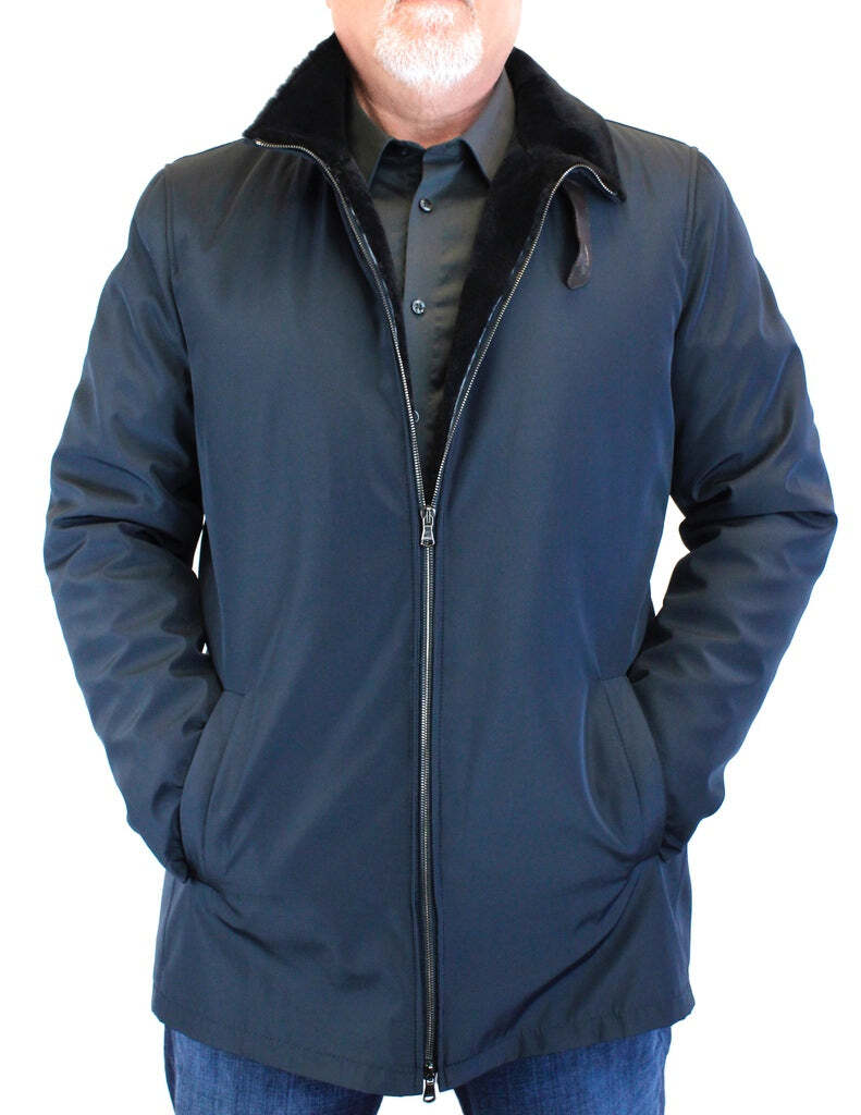 DI BELLO - Men’s Navy Blue Merino Shearling-Lined Raincoat
